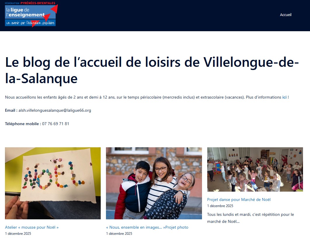 Lien vers le BLOG de l'accueil (Projet pédagogique, règlement intérieur, tarifs, articles etc... : https://blog.laligue66.org/le-blog/le-blog-accueil-villelongue/