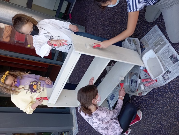 Suite au conseil d'enfants mené par l'équipe d'animation, le groupe de cm1/cm2 a décidé de rénover la bibliothèque installée il y a 4 ans dans la salle d'accueil. Un atelier "bricolage" a été organisé pendant le temps méridien et a donné lieu à de bons moments de partage et de convivialité !