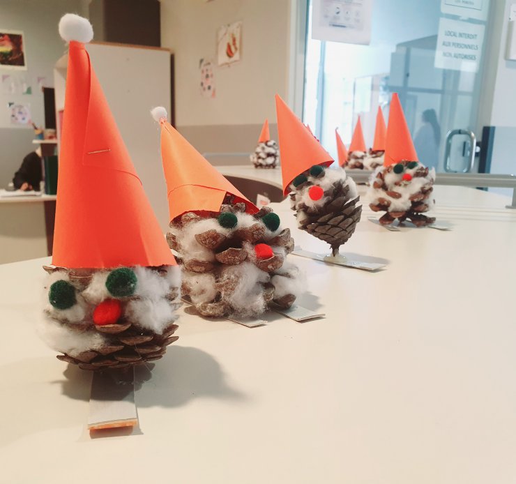 Depuis la rentrée de Novembre, les enfants du périscolaire de Coubertin se sont mis à la fabrication de petites décorations hivernales. Ces activités manuelles sont réalisées essentiellement avec des matériaux de récupérations (pommes de pins, chute de papiers, brique de jus de fruits, etc). Comme à chaque cycle, ces créations vont venir embellir les couloirs et locaux de l'école afin de transporter les enfants, le temps d'un regard, dans un monde enneigé.