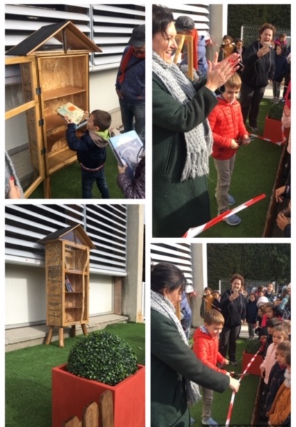 Descendue tout droit de la montagne, la cabane à livres a vu le jour dans la cour de l'école depuis le mois de Novembre. Créée entièrement avec grand soin par les mains d’un artiste, elle est parsemée de citations donnant déjà un goût prononcé pour la lecture. Les enfants choisissent un livre, s’assoient sur un coussin et peuvent ainsi profiter d’un moment de détente à l’extérieur dans un coin spécialement aménagé pour eux et profiter d'une belle lecture.