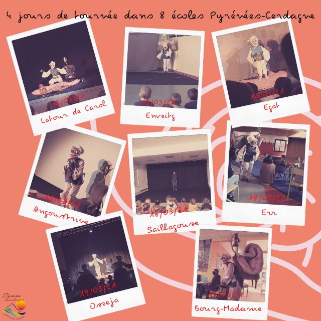 Une tournée rien que ça ! Nous sommes partis 5 jours en Cerdagne pour effectuer 8 représentations du spectacle Escargot de la compagnie Teatro del piccione dans les écoles maternelles de Cerdagne.