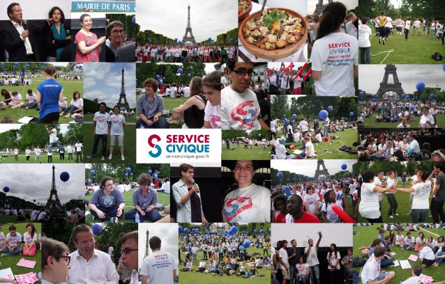 Le mercredi 27 juin 2012, l’Agence Nationale du Service Civique a organisé à Paris, le rassemblement National annuel des jeunes engagés dans le cadre d’un Service Civique. Tous les jeunes de 16 à 25 ans effectuant cet acte volontaire et citoyen, étaient invités à se rendre à la capitale par leurs propres moyens, ou en utilisant des bus affectés, partant de 29 villes de France.