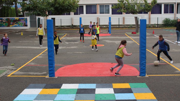 À l’extérieur, dans la grande cour de récréation, un match de foot fait rage ! On y retrouve une partie des enfants d’élémentaire divisés en deux équipes. Ils sont encadrés par un jeune animateur ayant à cœur de les entraîner au mieux, tout en veillant à ce que tout le monde puisse jouer, malgré la différence d’âge et de niveau.