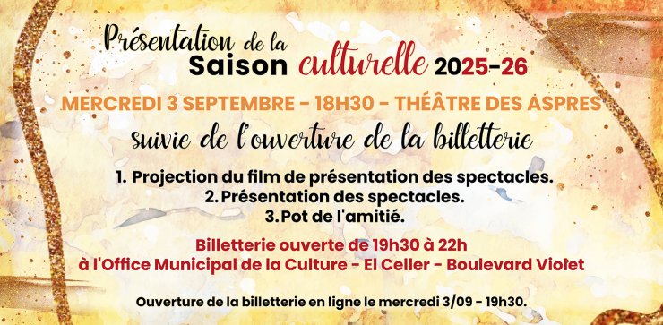 Rendez-vous à 18h30 le mercredi 03 septembre 2025 au Théâtre des Aspres pour la présentation de la saison culturelle 2025-2026 !