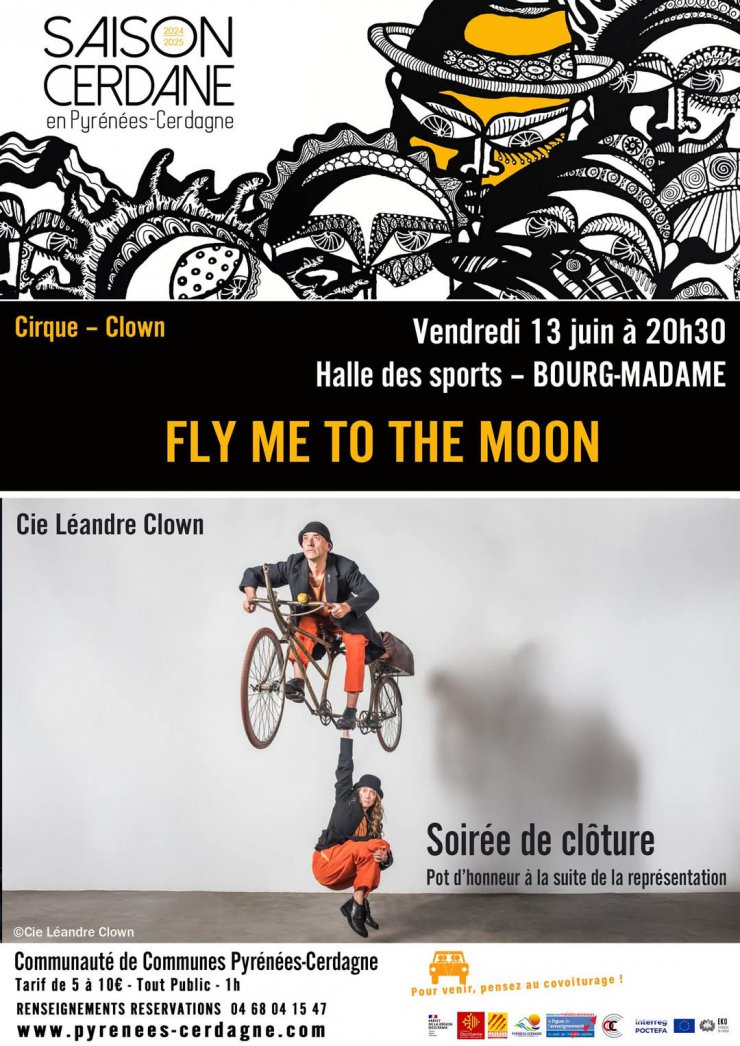 Clôture de la Saison Cerdane 2024/2025 avec le spectacle Fly me to the moon de la compagnie Léandre Clown, le vendredi 13 juin 2025 à 20h30 à la halle des sports de Bourg-Madame.