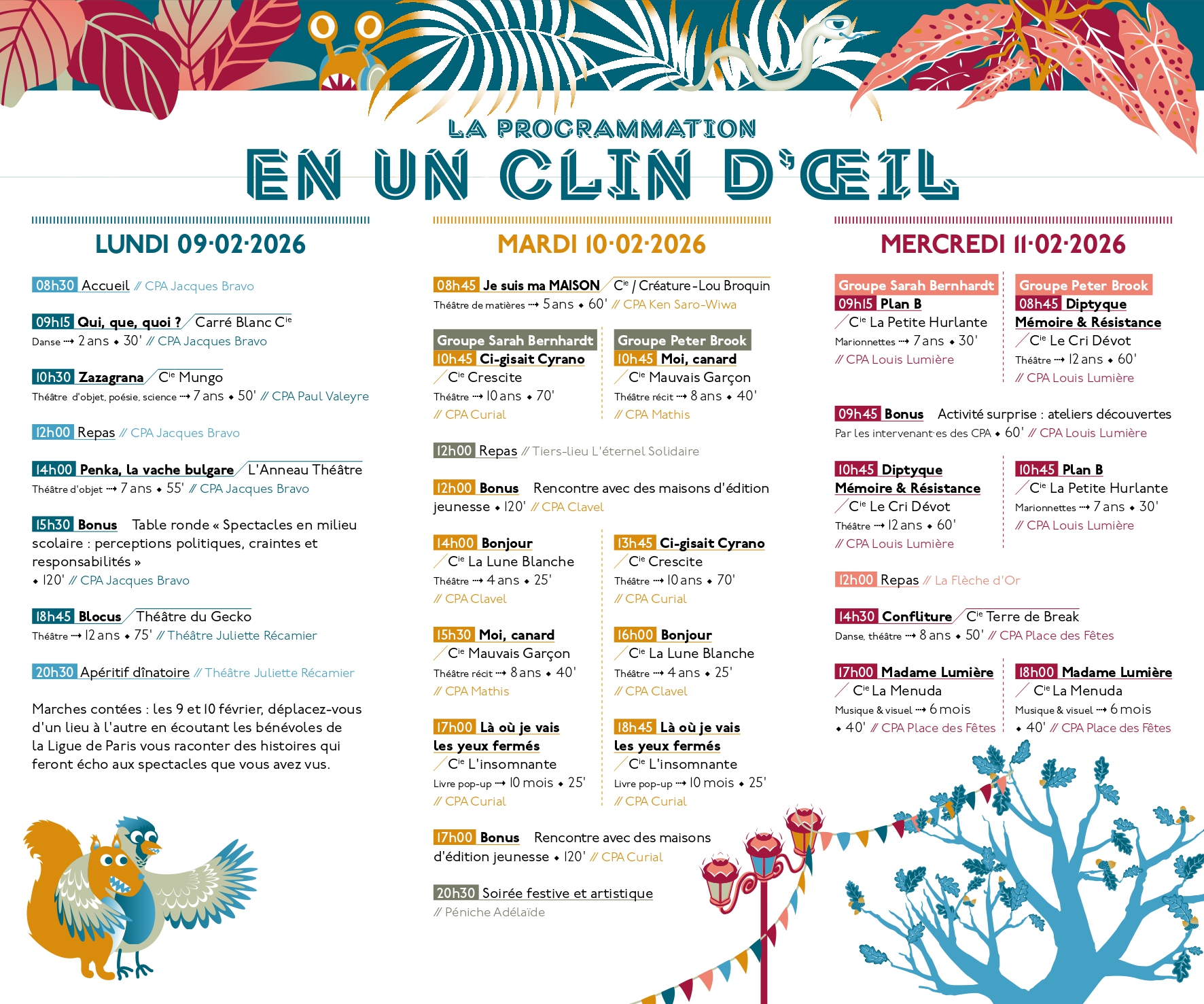 Durant ces 3 jours, vous pourrez assister à 13 spectacles jeune et tout public.