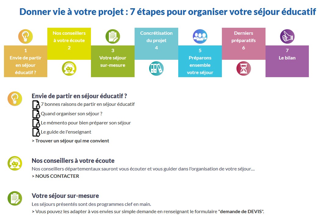 Le site des séjours éducatifs de la Ligue de l’enseignement propose un espace enseignant avec toutes les infos pratiques pour organiser un voyage scolaire.