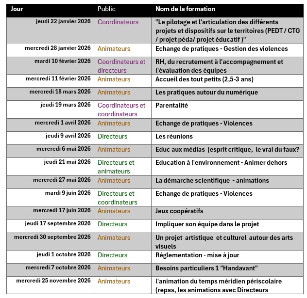 Programmation des formations 2026